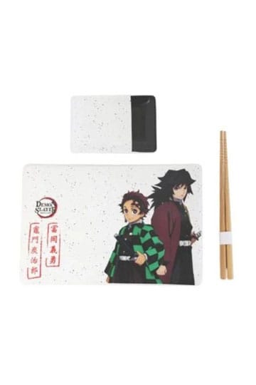 Demon slayer ceramic sushi set with chopsticks tanjiro & giyu