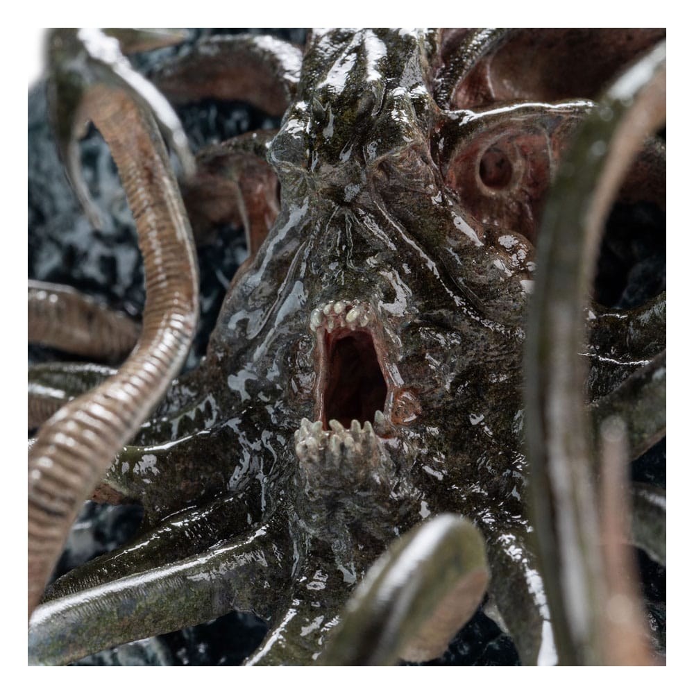 Despertado del sueño profundo por la inocente ondulación de una piedra fundida, extendió sus muchos apéndices viscosos, deslizándose lentamente para atrapar su pronto comida. Por mucho tiempo que sea, por mucho tiempo que sea, sus fauces abiertas y de dientes albergaban no menos peligro, y el hambre solo había avivado su deseo de deleitarse con carne, ahora escaso. Sin embargo, algo sobre uno de los más pequeños le llamó, más allá del mero instinto de consumir, algo que codició. Cuando el grupo se distrajo, el lago se agitó y el observador en el agua golpeó. El observador visto en la pantalla fue cuidadosamente elaborado a través de medios digitales, con actores colgados al revés a través del arnés, pateando salvajemente a la bestia imaginada. Ahora, contemple esta antigua entidad, llevada meticulosamente a la vida tangible por nuestro excepcional equipo de artesanos. Una reliquia de las profundidades de los reinos más oscuros de la Tierra Media, esta estatua en miniatura es una adición cautivadora a cualquier colección. La forma única esculpida del observador permite que se aprecie desde cualquier ángulo. Muéstrale en erupción de tu estante o, gracias al enchufe incorporado en la base, montado en tu pared, revelando su monstruosa esencia en plena gloria. - Hecho principalmente de Polystone; - Tentáculos hechos de poliuretano con un núcleo de metal; - aproximadamente 3.7 pulgadas de alto; - Monte de pared en la parte posterior para colgar fácilmente; - Representa al observador en el agua como se ve fuera de las minas de Moria durante la comunión del anillo; - Digitalmente esculpido por el taller de Weta Taller 3D Artist Tiger Kang, con referencias de la película original Maquette y los bocetos de diseño de concepto. Tamaño del producto: 10,5 cm x 9 cm x 16 cm