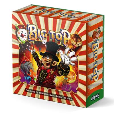 Big Top Step into the spotlight with Big Top, a fast-paced auction game where every bid builds your circus—and your strategy. Win exciting acts to complete your attractions, but bid wisely: your past wins affect future auctions, and your coins fuel your opponents. Read the table, predict your rivals, and balance risk and reward to become the ultimate ringmaster in this clever card game for 3–4 players. Key Features:STRATEGIC AUCTION GAMEPLAY: Bid on dazzling circus acts in a clever, tactical auction system where every coin counts—and every past card influences your future.UNIQUE BIDDING MECHANIC: Win cards by bidding exact amounts needed to complete your previous attractions and unlock powerful point-scoring combos.PREDICT YOUR OPPONENTS: Keep a sharp eye on your rivals' collections and likely bids—use logic, timing, and deduction to stay ahead of the crowd.MULTIPLE WAYS TO SCORE: Earn points from completed attractions, clown cards, large-denomination coins, and most stars collected—it’s more than just winning bids.SMALL BOX, BIG GAME: Perfect for game nights and travel, Big Top delivers layered strategy in under 40 minutes, all in a compact, portable format.Contents:4 Player Screens1 Auctioneer Token30 Attraction Cards1 Game End Card4 Starting Ringmaster Cards4 Completed Attraction Tokens6 Star Award Tokens78 Coins (70x $1 and 8x $5)
